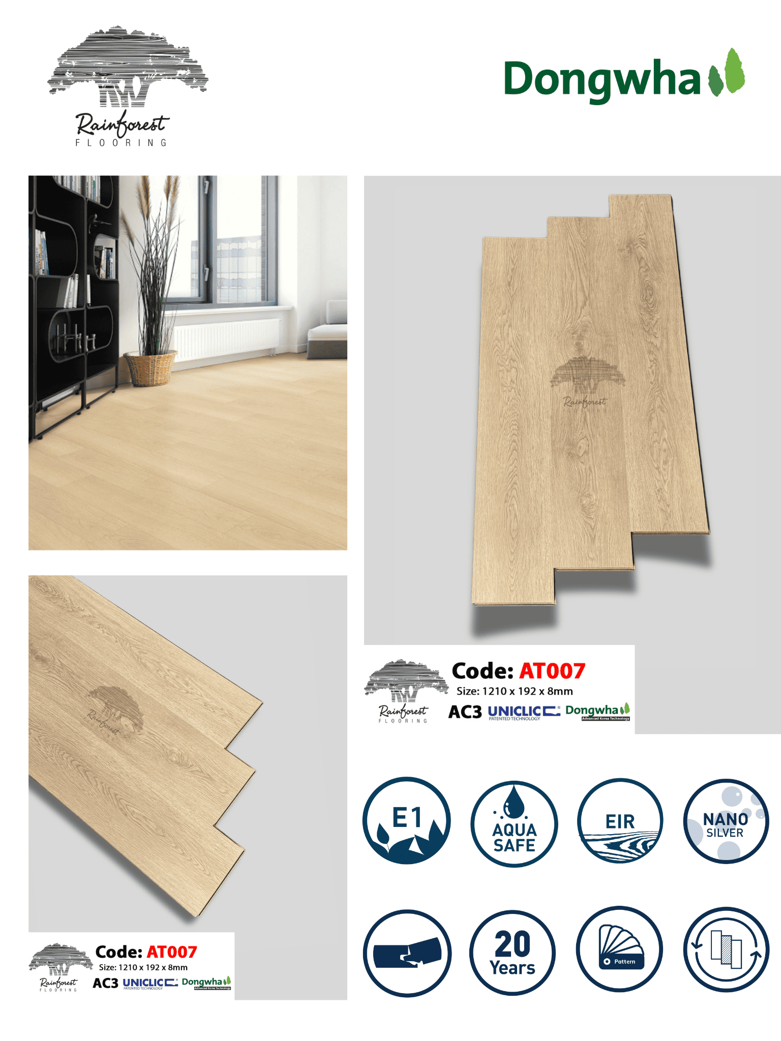 + Mã sản phẩm: Sàn Gỗ Rainforest AT007